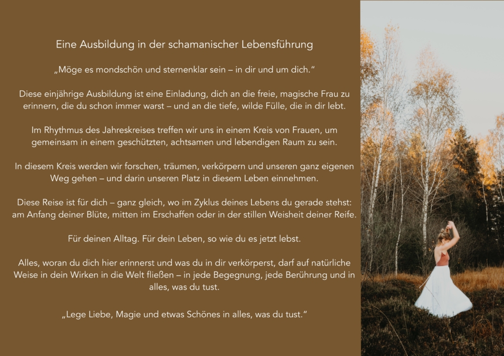 Diese einjährige Ausbildung ist eine Einladung, dich an die freie, magische Frau zu erinnern, die du schon immer warst – und an die tiefe, wilde Fülle, die in dir lebt.